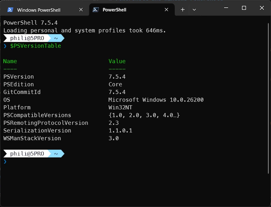 - Some scripts or Windows tools may still use PowerShell 5.1.