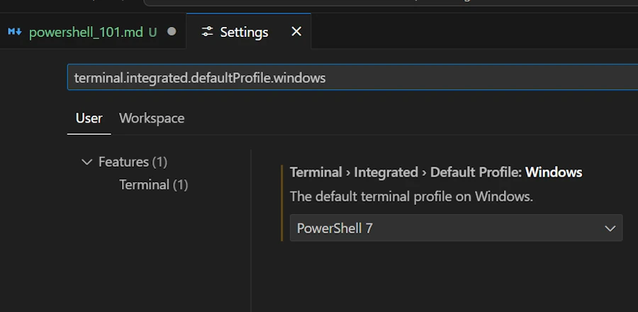 - Set PowerShell 7 as your default shell in Terminal Windows settings
