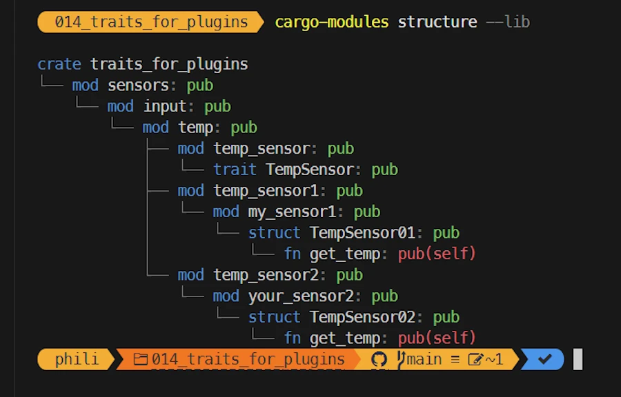 my_sensor1.rs) does not match the directory name (temp_sensor1/). This is intentional: I want to keep the file hierarchy independent from the module tree and truly understand the differences between both. - The project also includes both