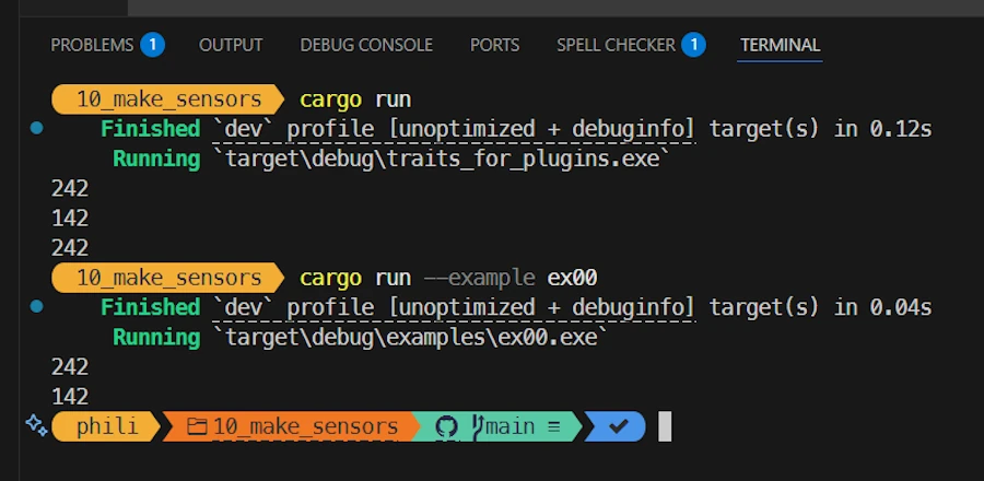 main.rs,crate::refers to the binary crate → use the crate name fromCargo.tomlto access library modules make_sensor()works as a factory, returningBox<dyn TempSensor>Vec<Box<dyn Trait>>allows storing different sensor types and calling methods via dynamic dispatchs.get_temp()works through auto-deref + borrow, turning theBoxinto&dyn TempSensorand dispatching through the vtable- The result: a modular, extensible architecture, ready to scale with more sensors and actuators