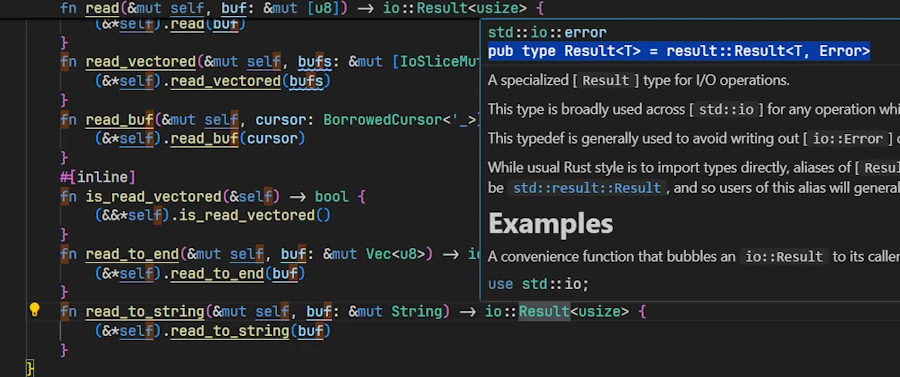 ?operator: A shorthand for propagating errors. It unwraps theOk()value or returns the error to the caller if it’s anErr(), effectively doing thematch+return Err(...)for us. This simplifies error handling in functions that just want to pass errors up the chain.- Usage requirements: We can only use