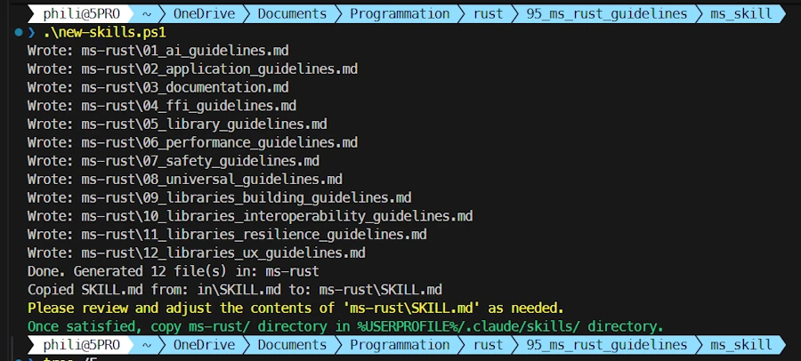 Once you are happy, copy and paste the ms-rust directory in $env:USERPROFILE/.claude/skills/ and you should be good to go.