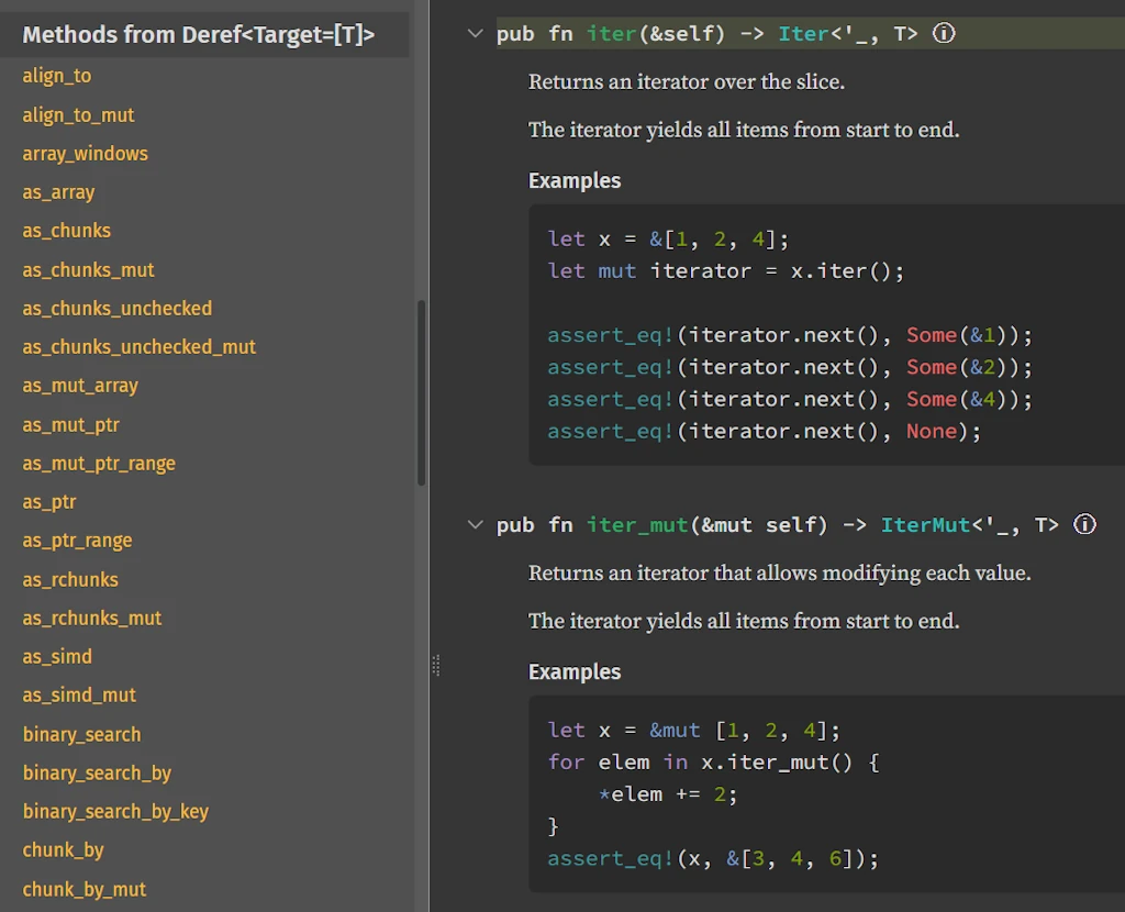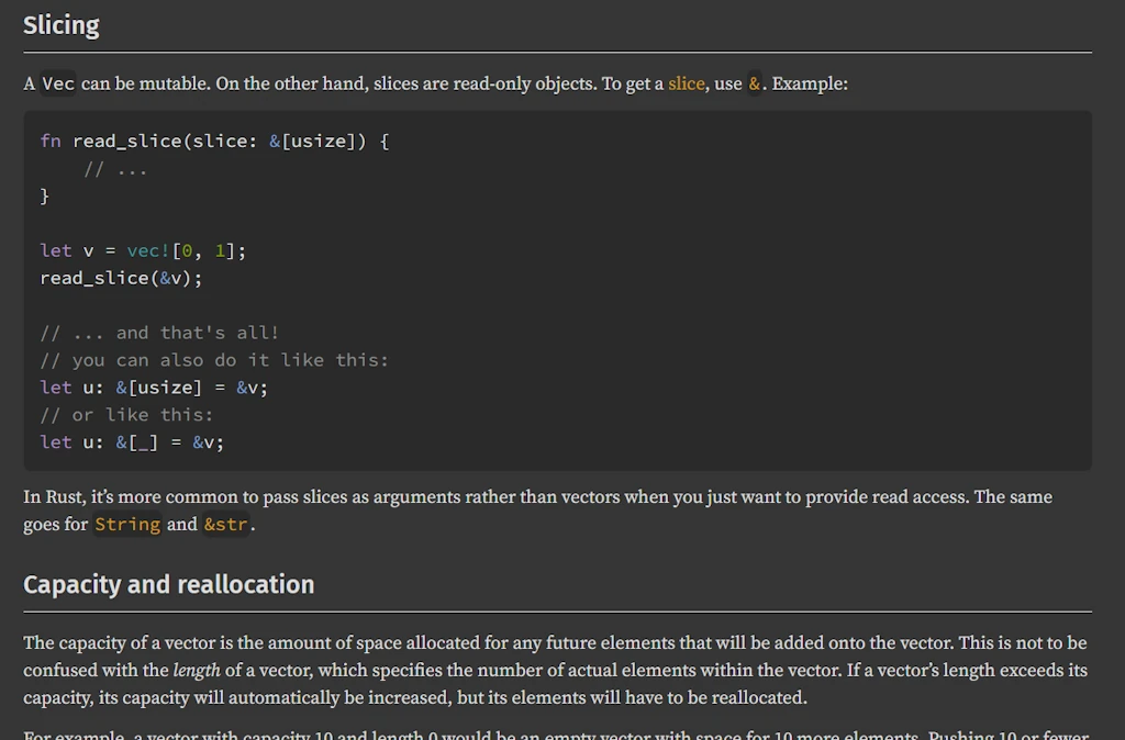 The idea here is to fight that bad habit and invest the time needed to learn a new language: the language of Rust’s Standard Library documentation. Why? Because there’s a real disconnect between the code we write and how it’s documented:
