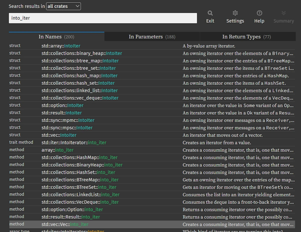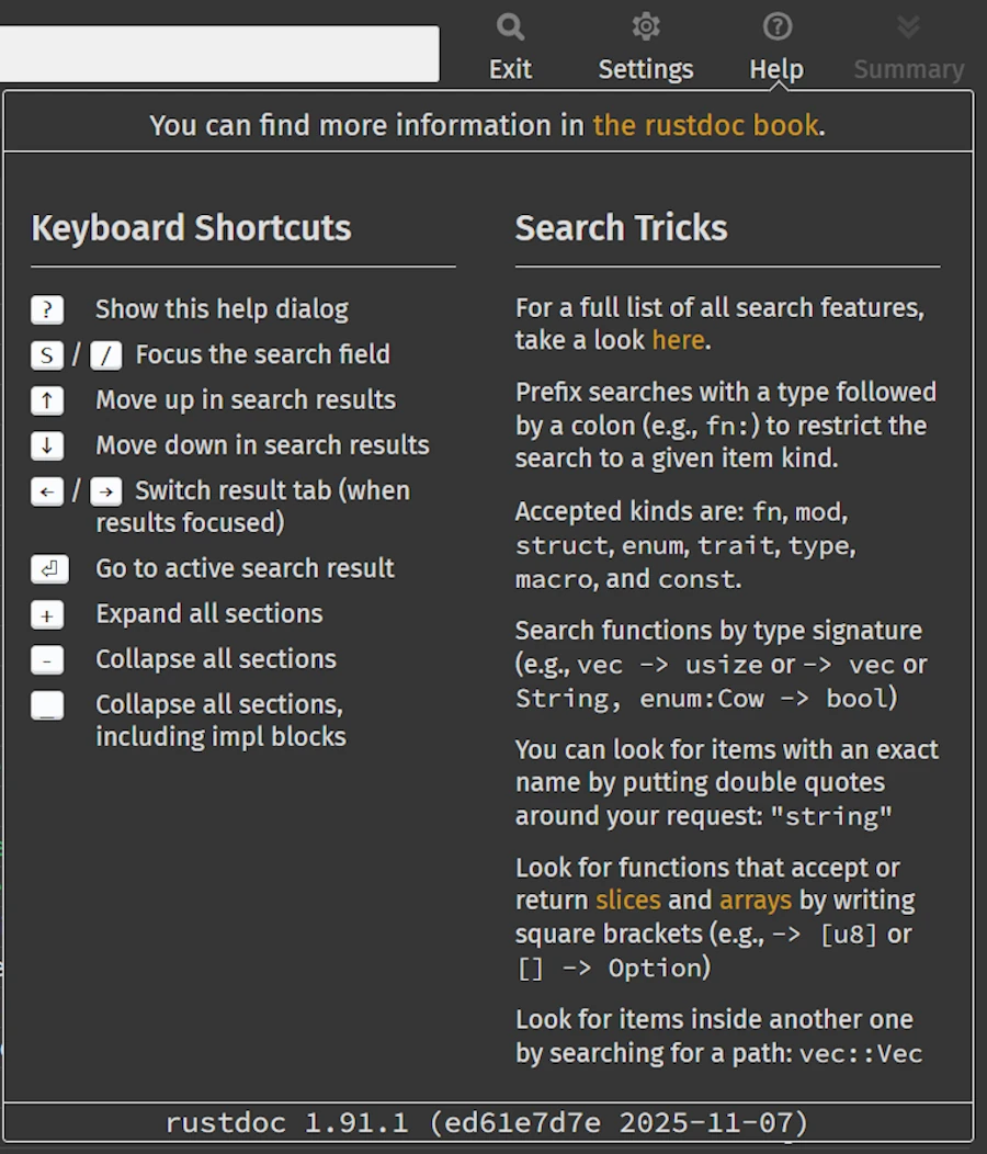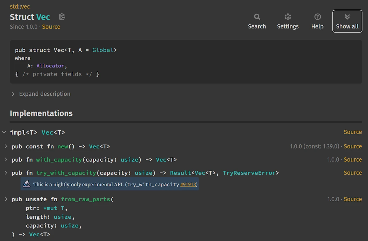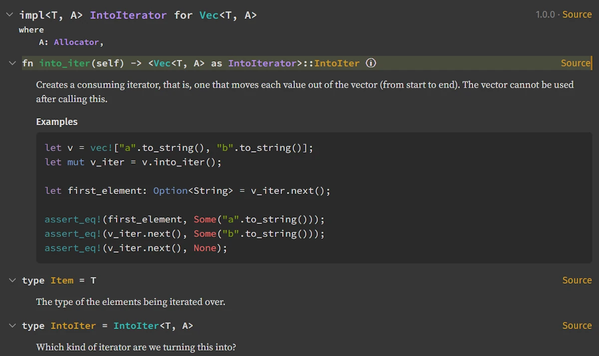 Every type, every trait, every method — we can trace it all through the documentation!