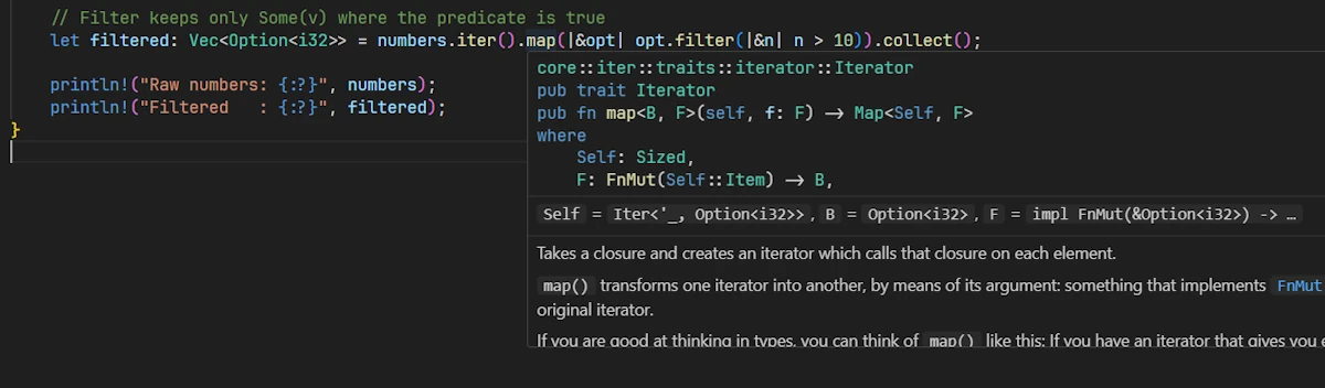 The good news? Once you learn to “speak documentation,” these signatures become readable—even helpful. That’s what this guide is about: bridging the gap between the Rust you write and the Rust you read in the docs.