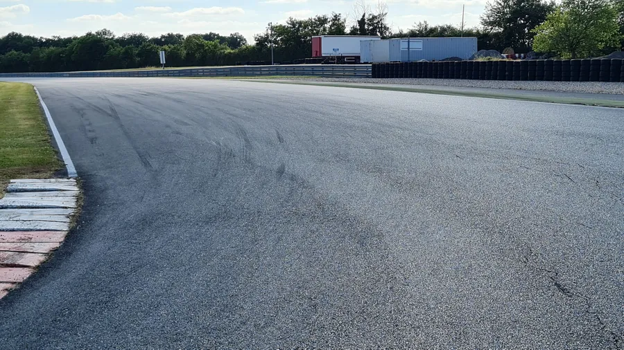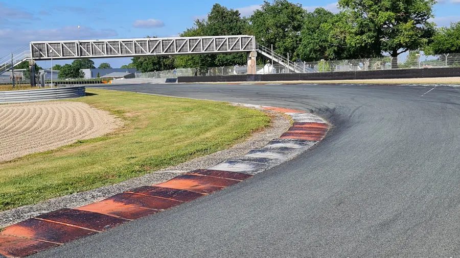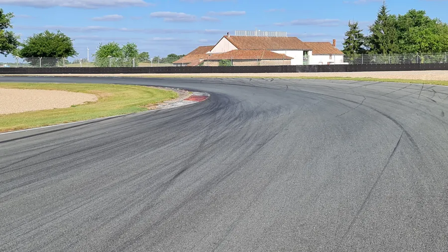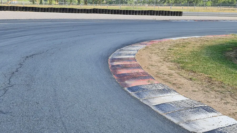 Si besoin on peut aller un peu plus loin que le vibreur (bizarrement, je n’y vais jamais 😂) car il y a du bitume sur quelques mètres supplémentaires. Cela dit, en sortie du virage précédent, c’est bien le bout du vibreur que je vise (il est plus facile à retrouver).