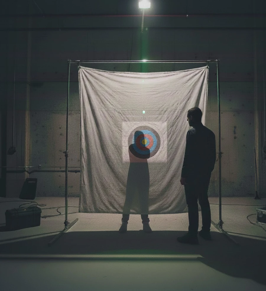 Imagine that you are holding a laser pointer, pointed at a white sheet hanging in front of you. Behind that sheet, there’s a target at a specific height - but you can’t see it.