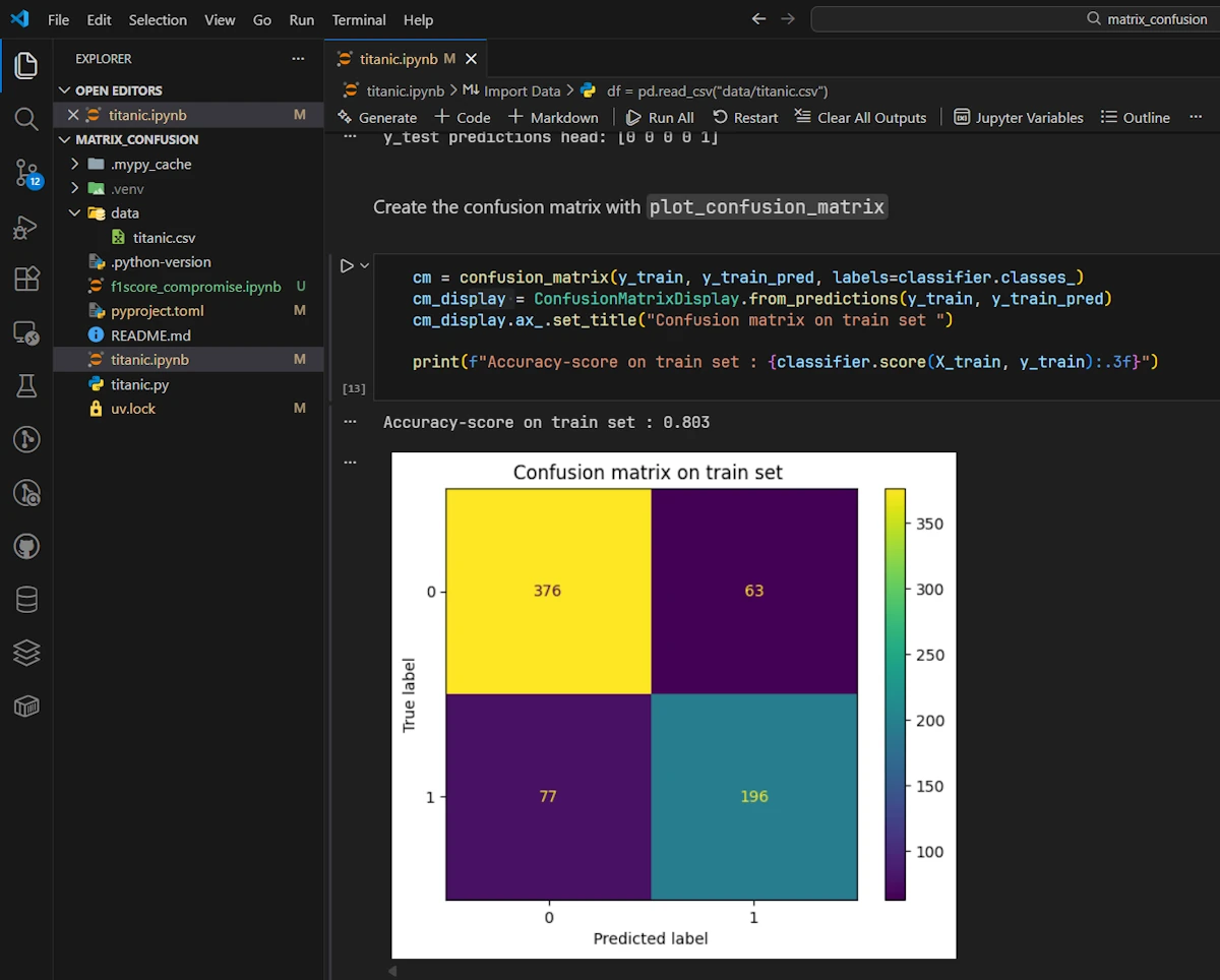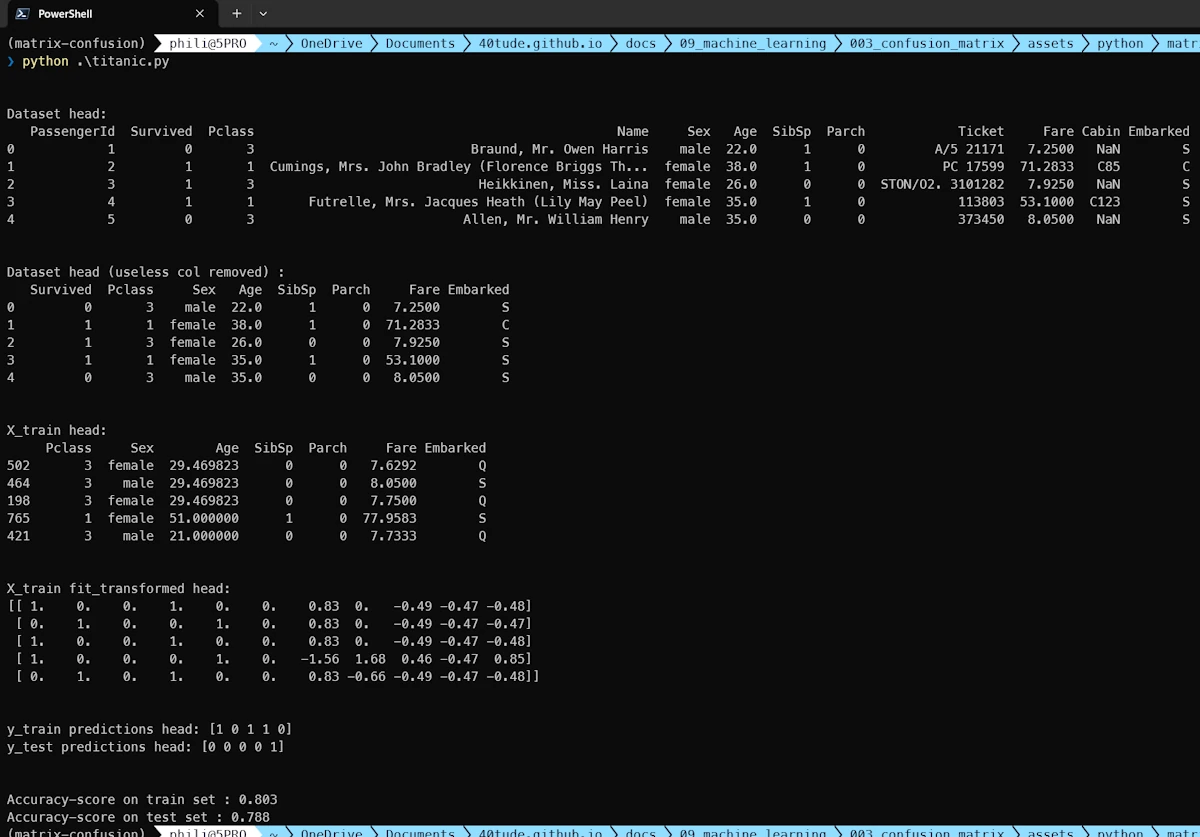 You thought we were in the Matrix? Nah, instead the confusion matrix is in the code. Below you’ll find two complete sample code because I hate partial code you can find in Medium that never works. One is in Python, the other is in Rust. Both use the Titanic dataset.